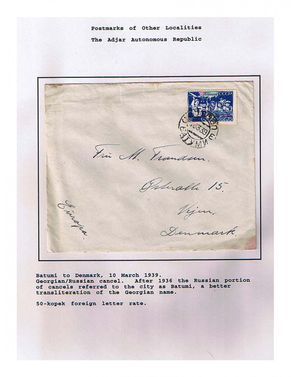 Georgia Postal History, 1924 - 1950 Frame 3