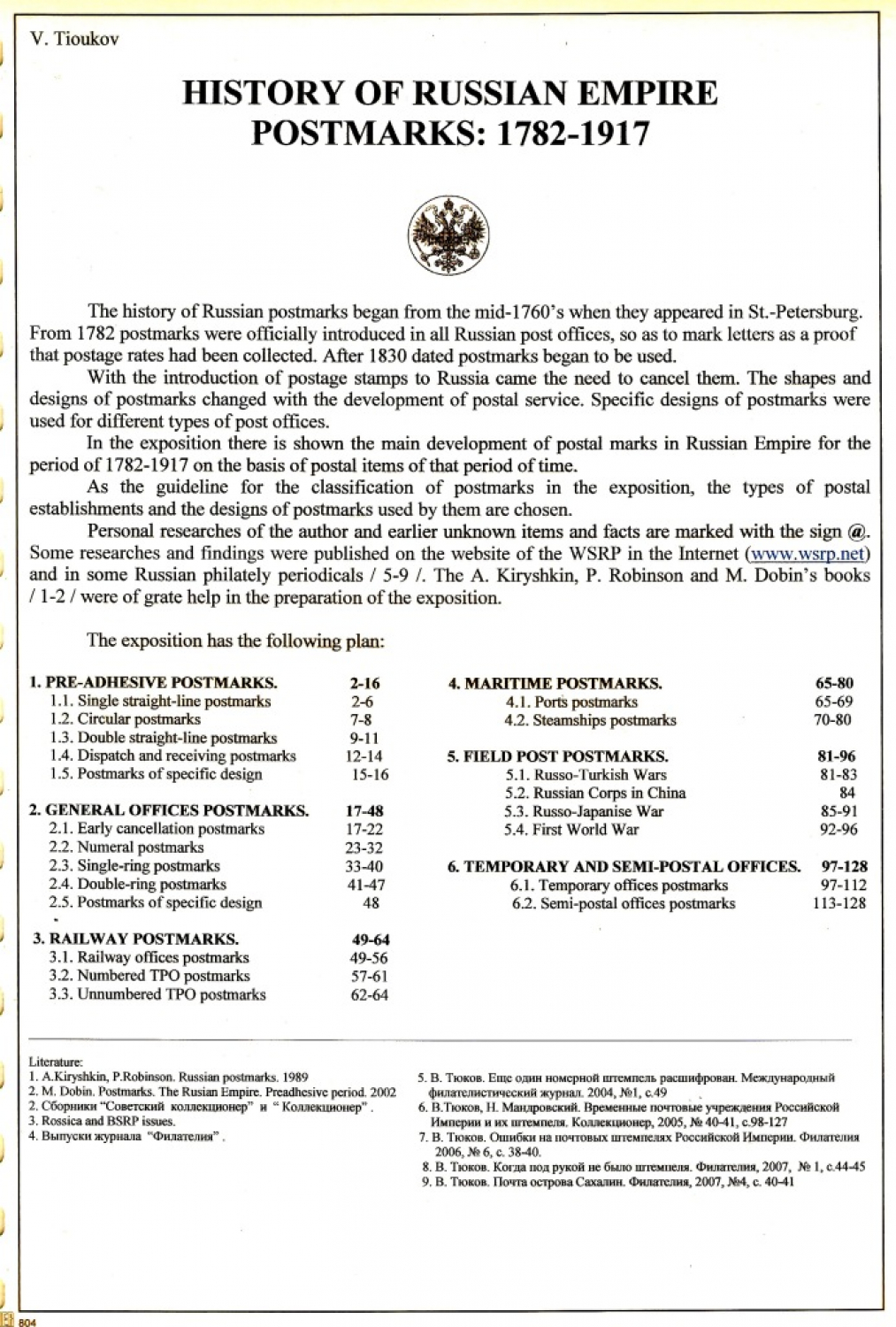 History of Russian Empire Postmarks 1782-1917, by Vladimir Tyukov
