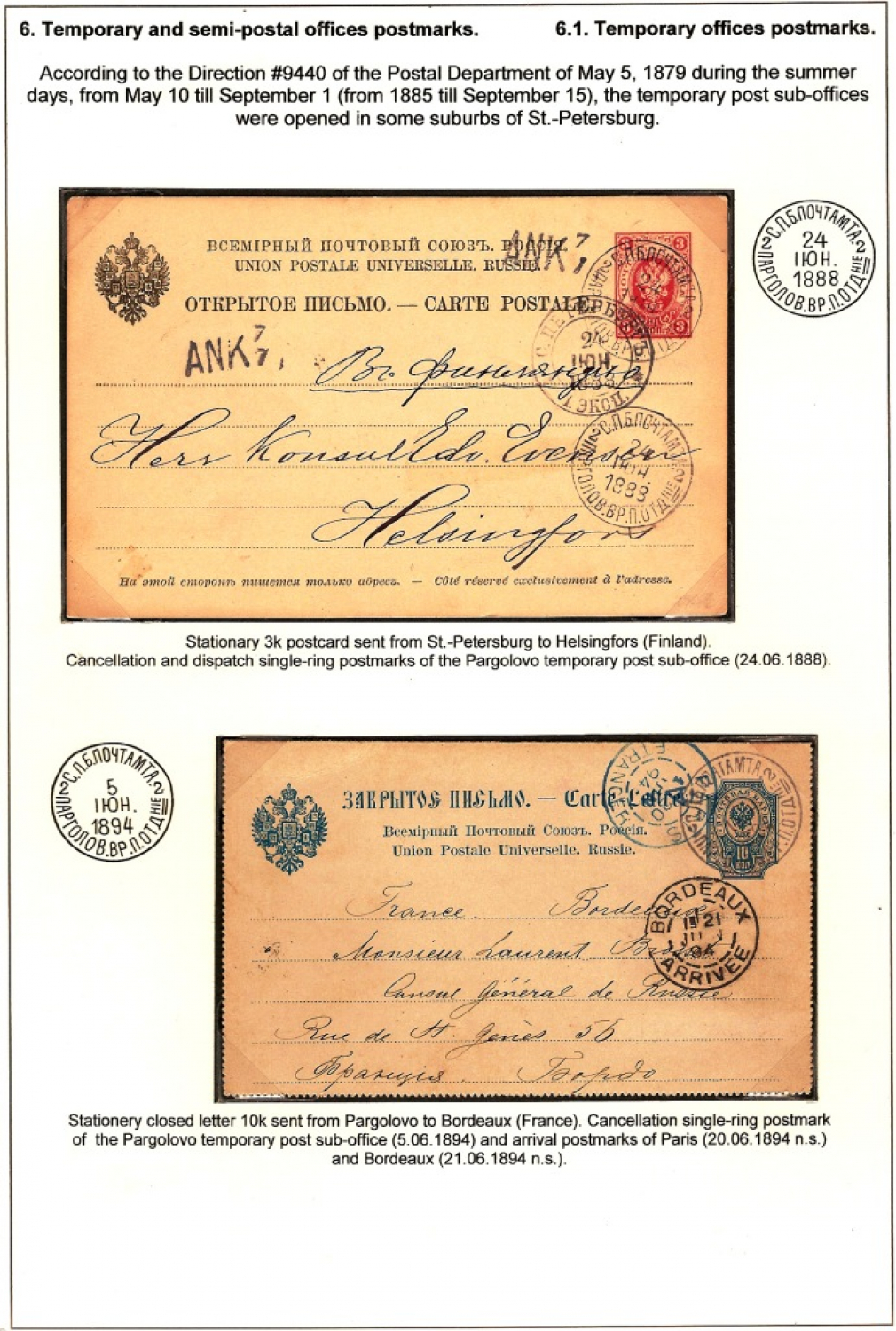 History of Russian Empire Postmarks 1782-1917