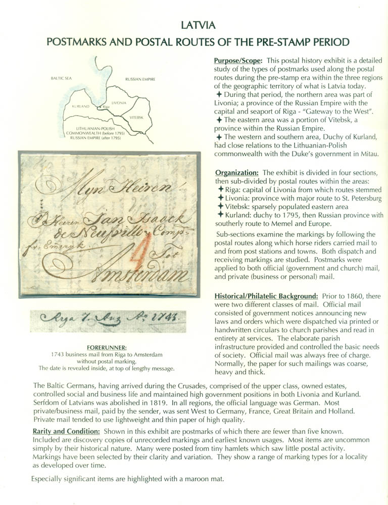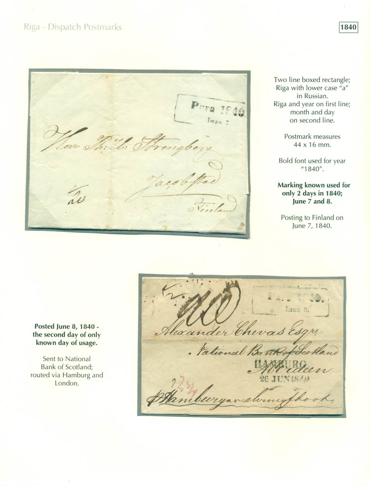 Latvia. Postmarks and postal routes of the pre-stamp period, by Vesma Grinfelds