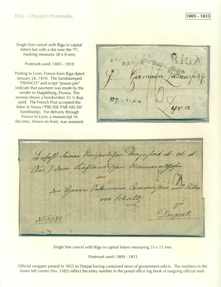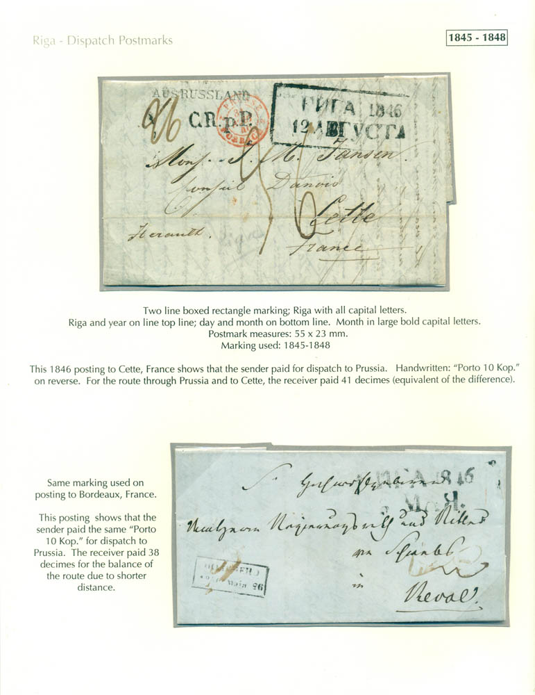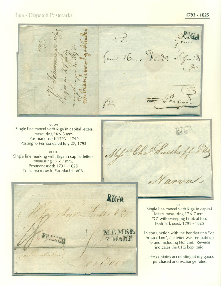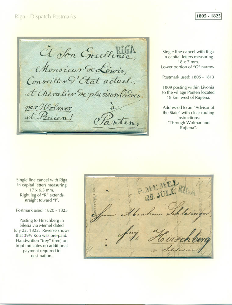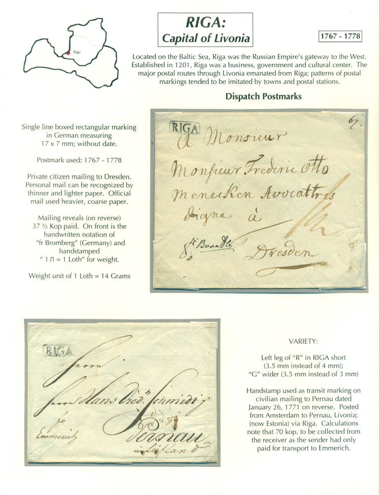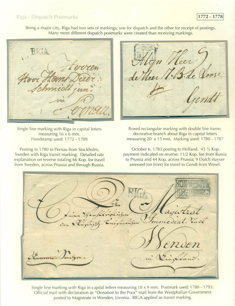 Latvia. Postmarks and postal routes of the pre-stamp period. Frame 1