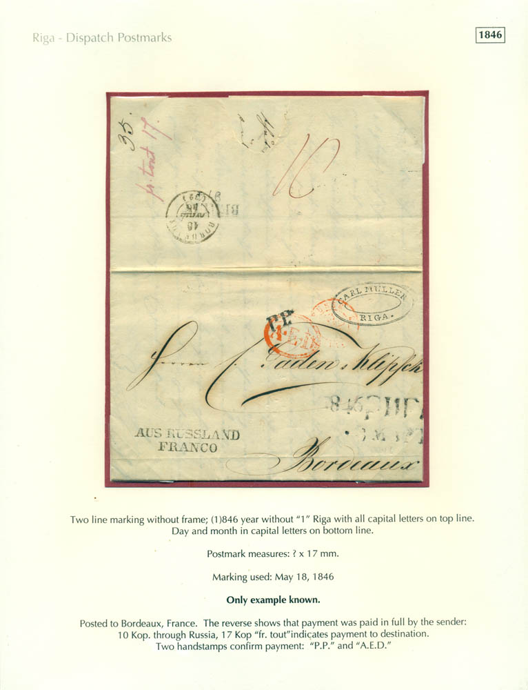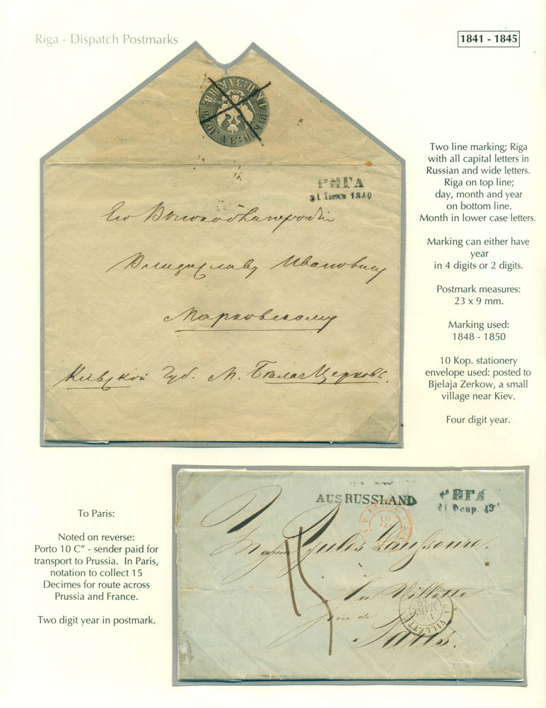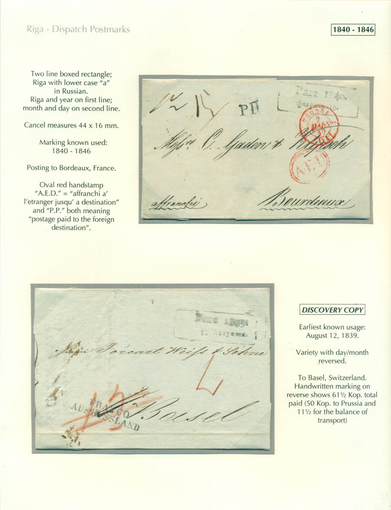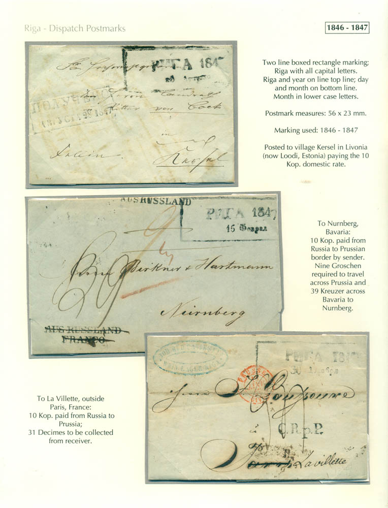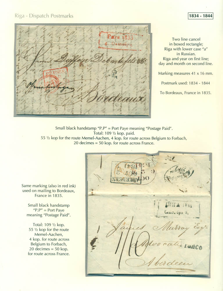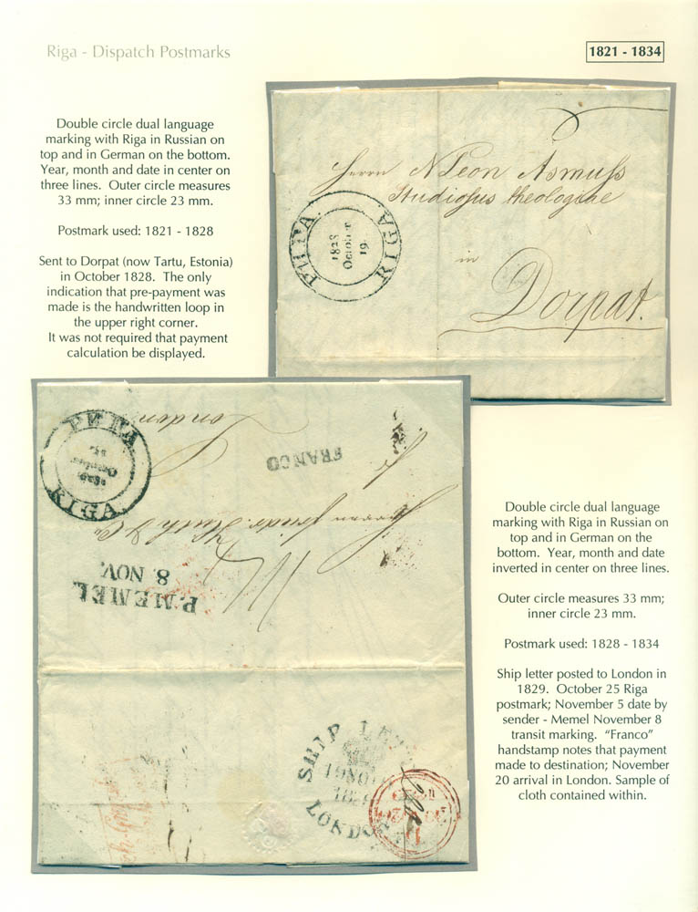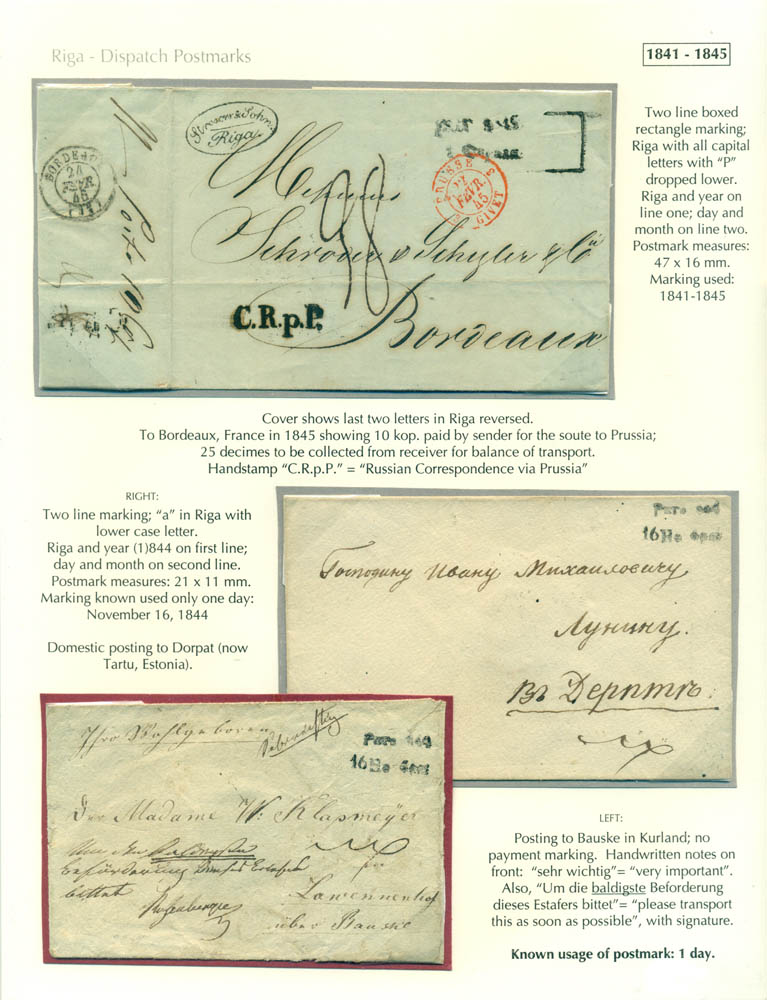 Latvia. Postmarks and postal routes of the pre-stamp period. Frame 1
