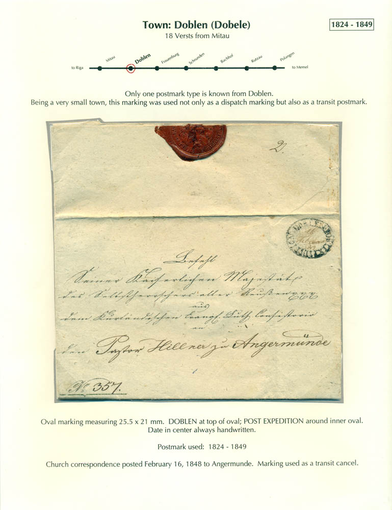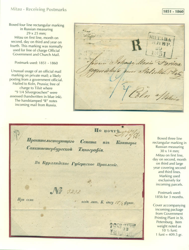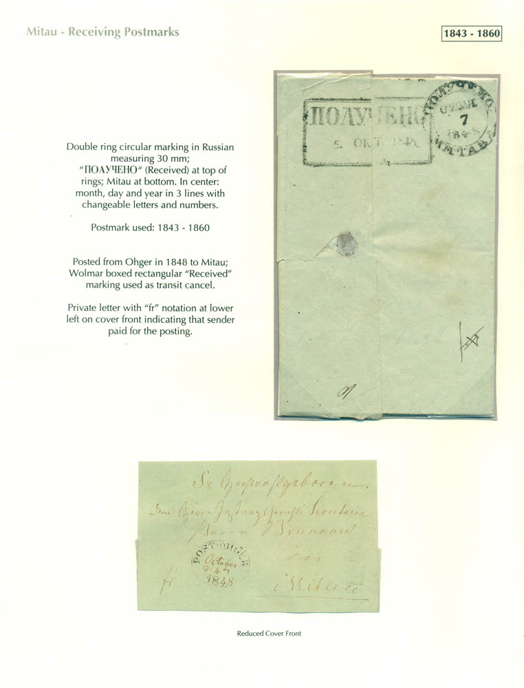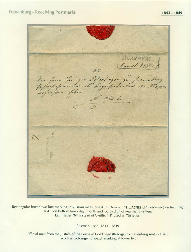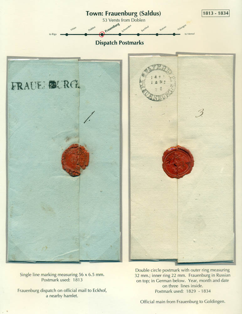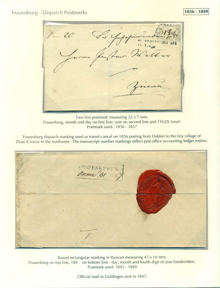 Latvia. Postmarks and postal routes of the pre-stamp period. Frame 6