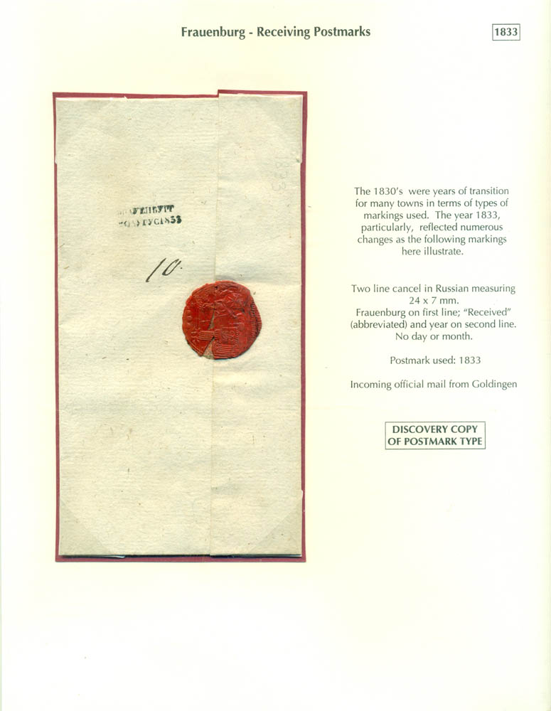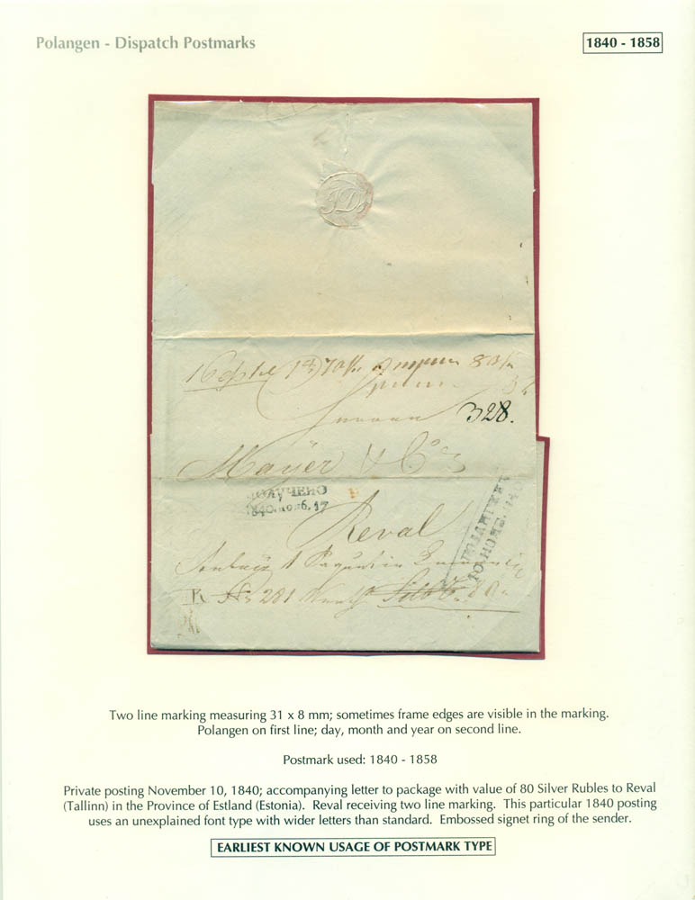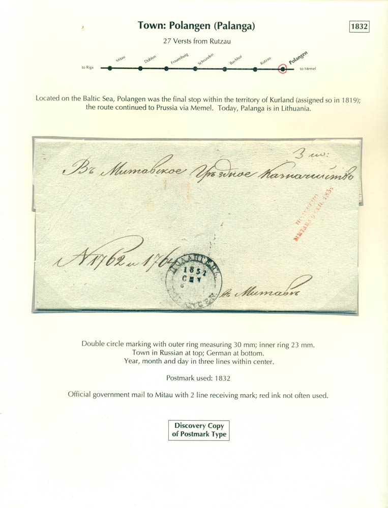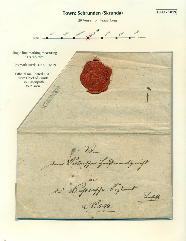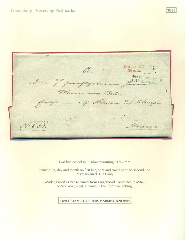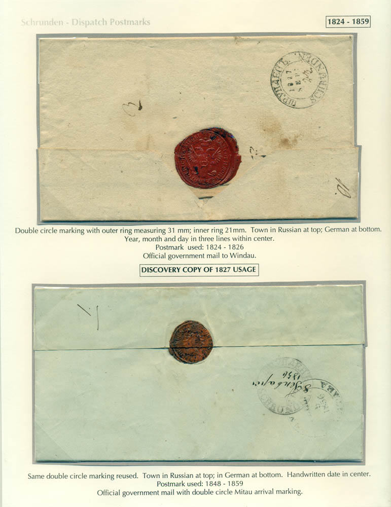 Latvia. Postmarks and postal routes of the pre-stamp period. Frame 6