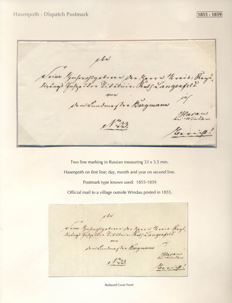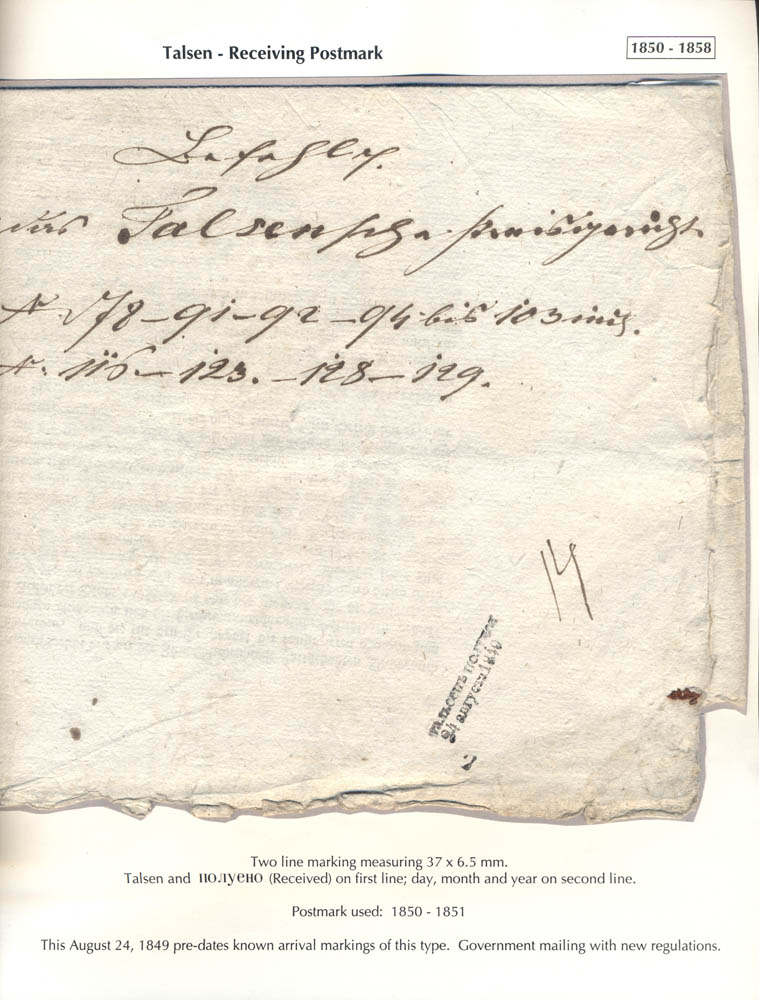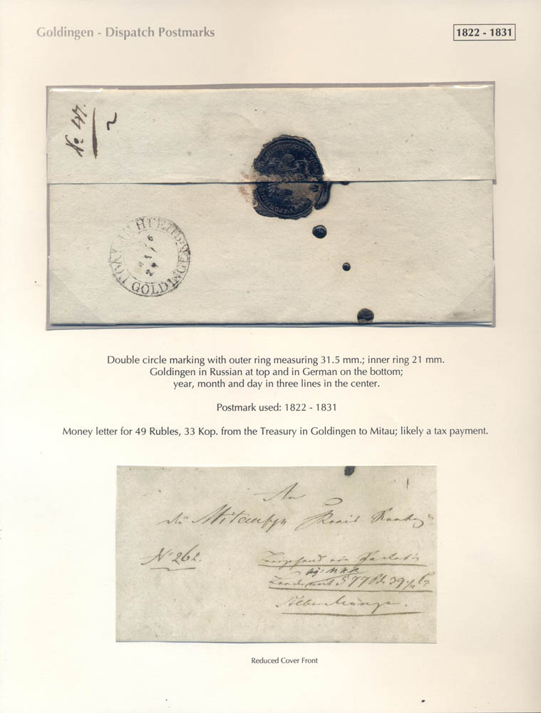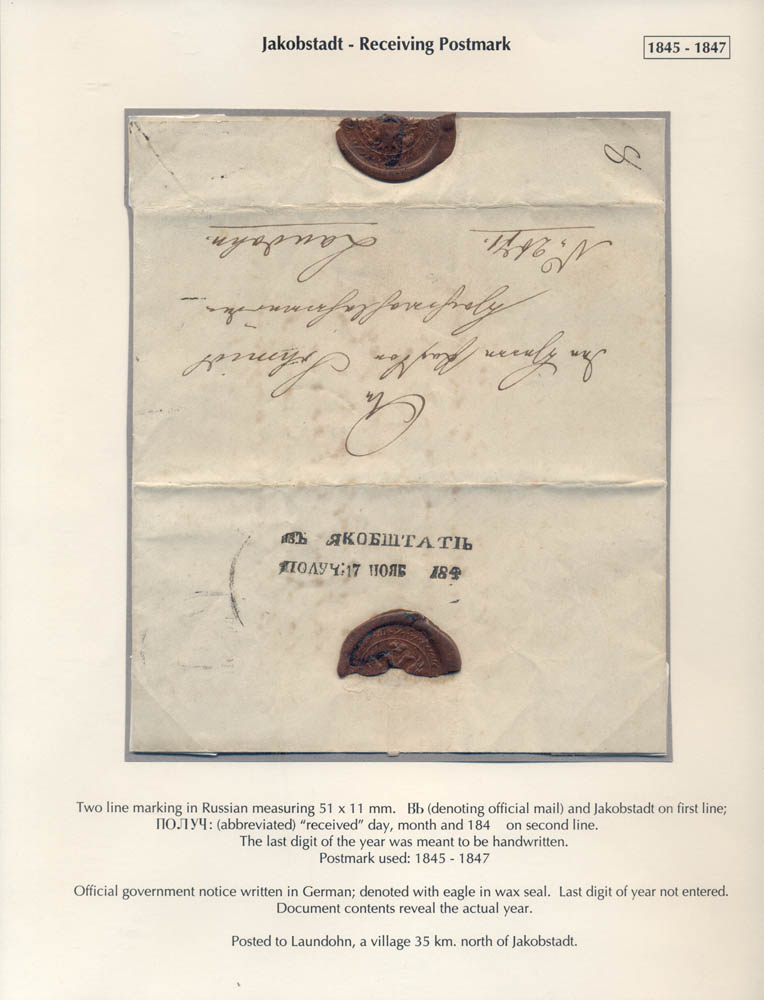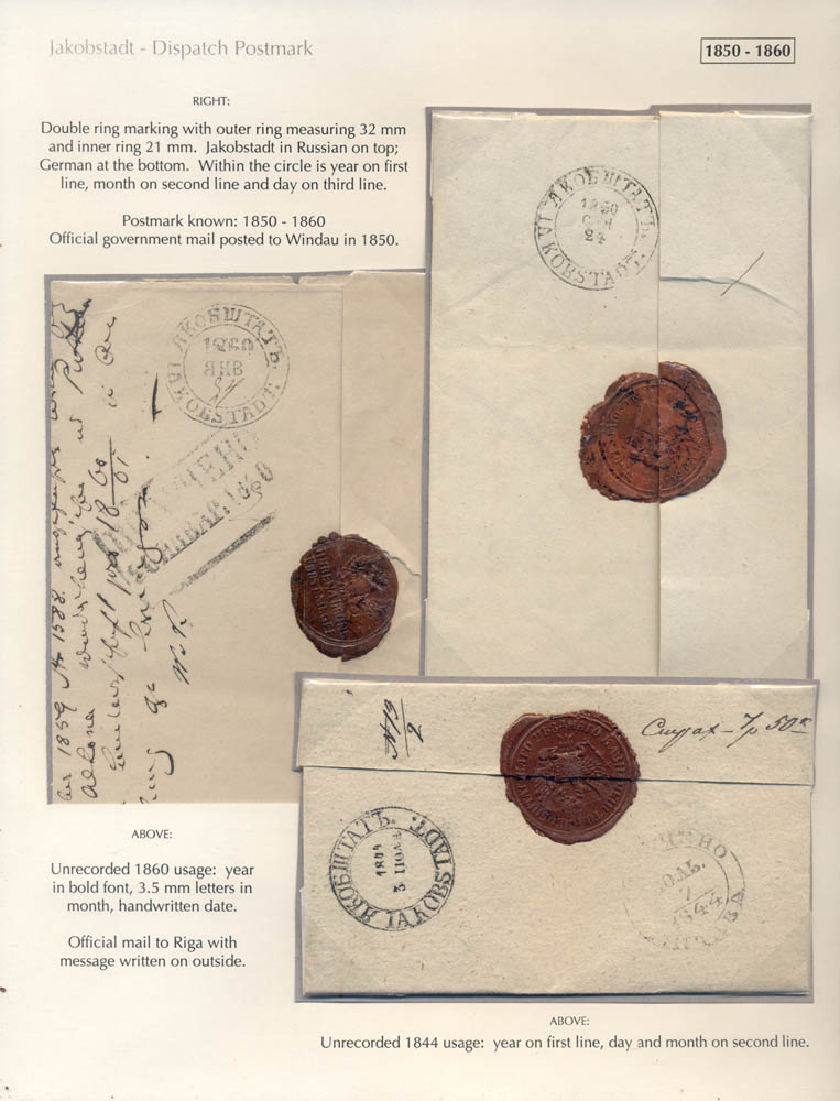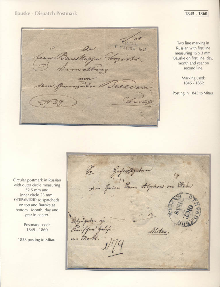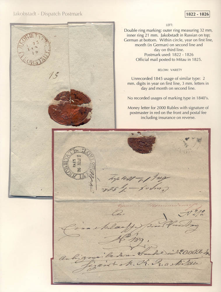 Latvia. Postmarks and postal routes of the pre-stamp period. Frame 8