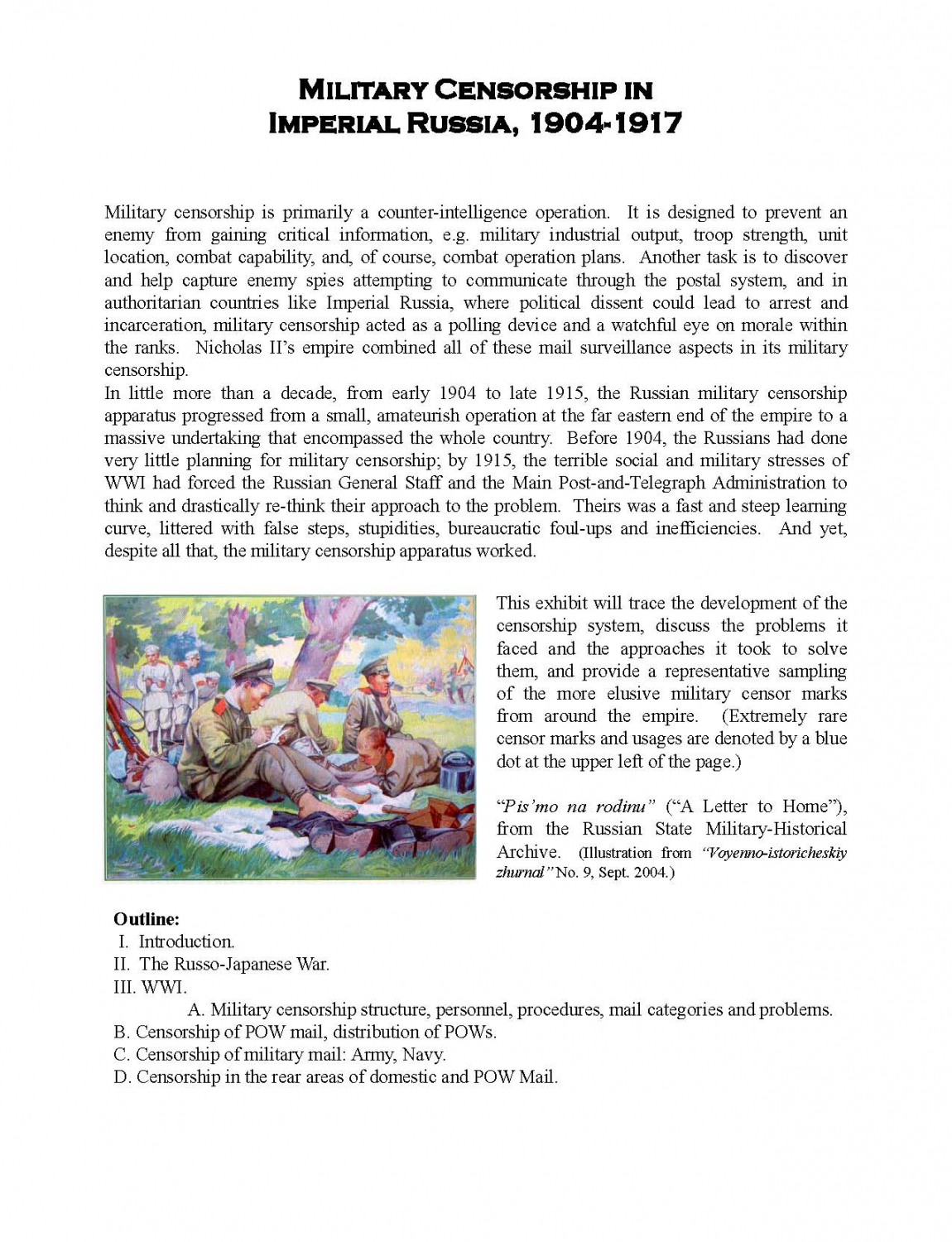 Military Censorship In Imperial Russia, 1904-1917, by David M Skipton