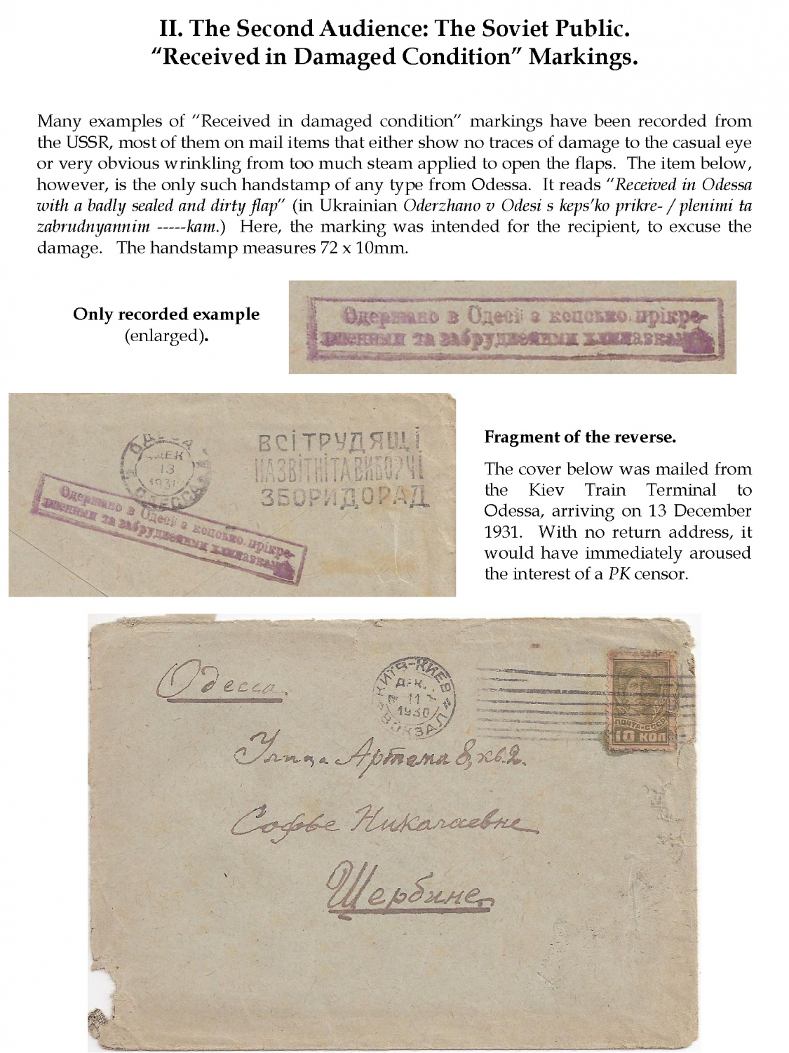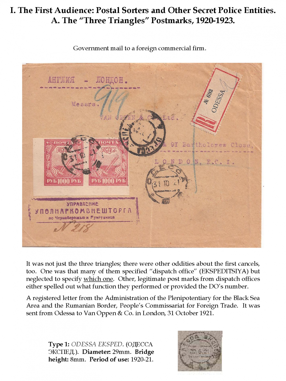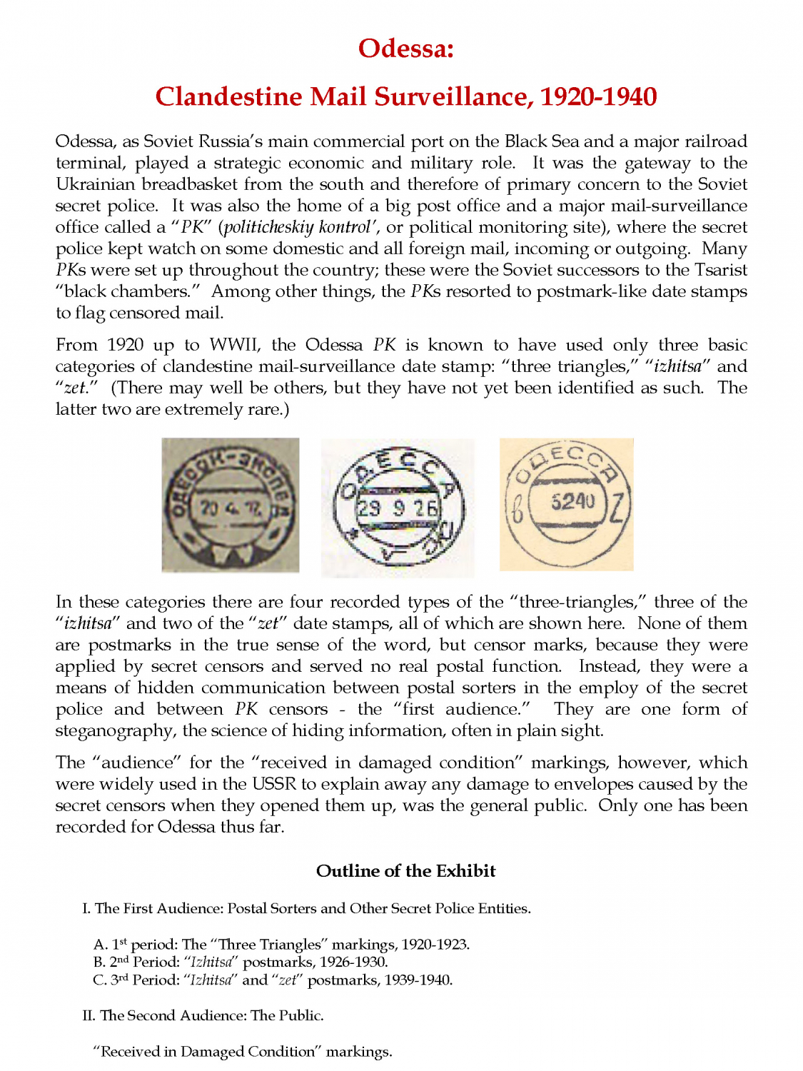 Odessa: Clandestine Mail Surveillance, 1920 - 1940