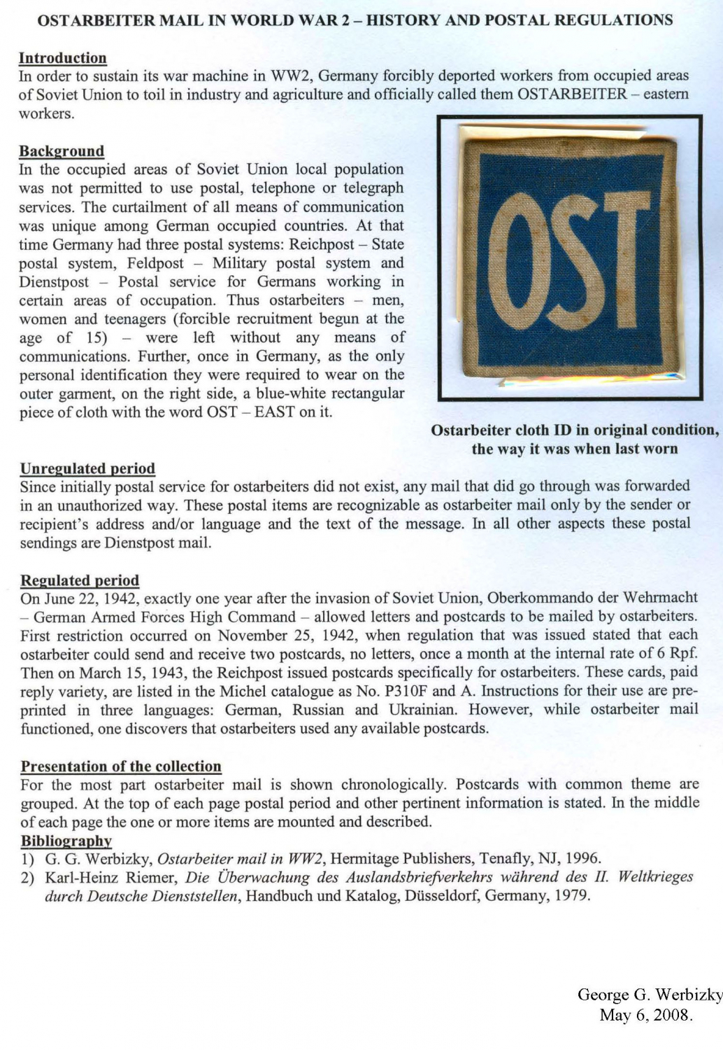 Ostarbeiter Mail in World War II – History and Postal Regulations, by George G Werbizky