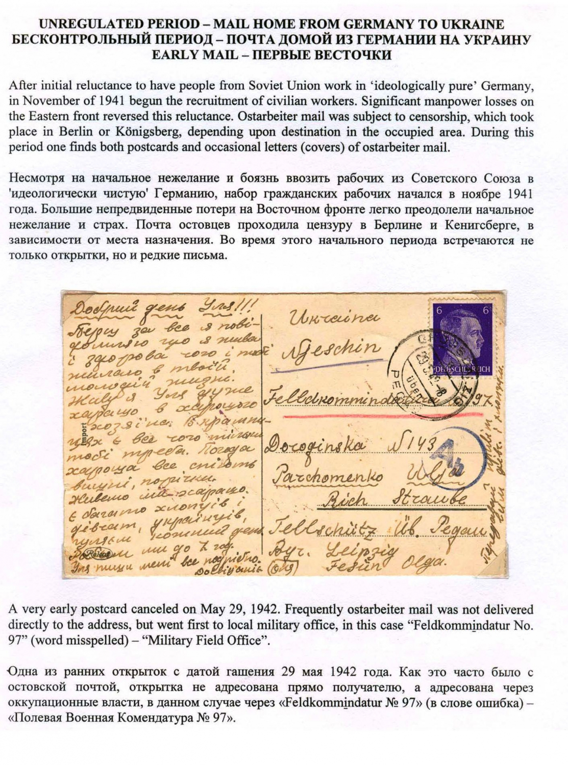 Ostarbeiter Mail in World War II - History and Postal Regulations
