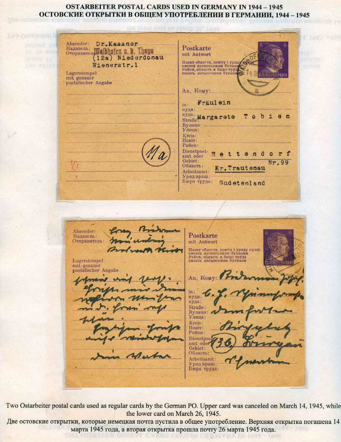 Ostarbeiter Mail in World War II - History and Postal Regulations