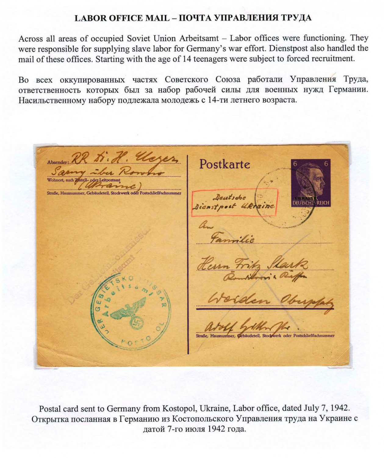 Ostarbeiter Mail in World War II - History and Postal Regulations