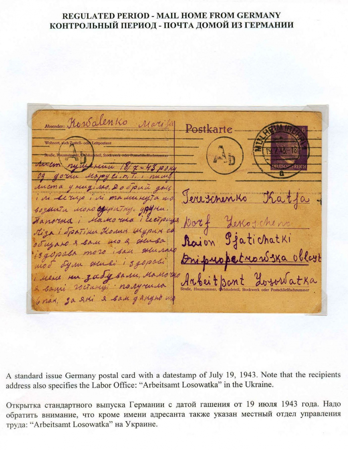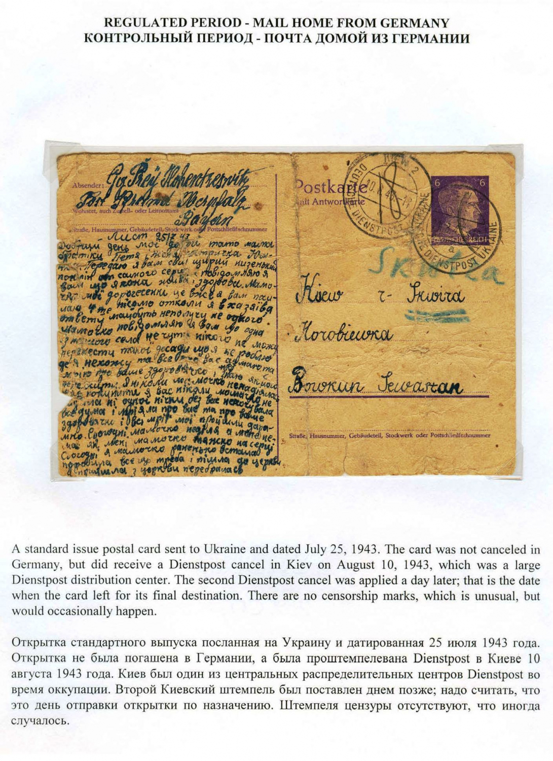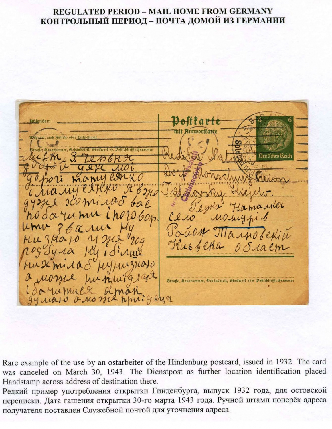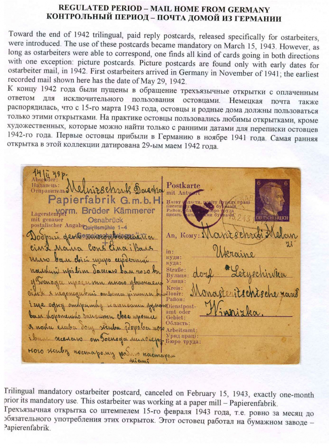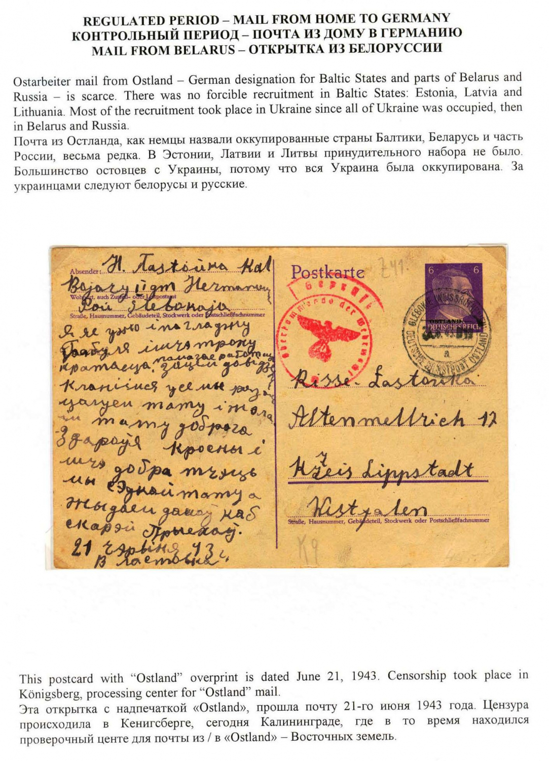 Ostarbeiter Mail in World War II - History and Postal Regulations Frame 3