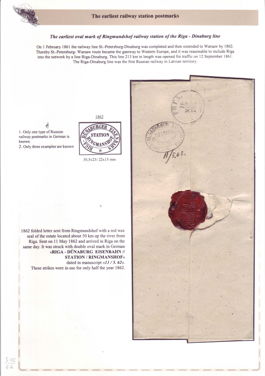 Railway Postmarks of the Russian Empire from 1852 - 1917
