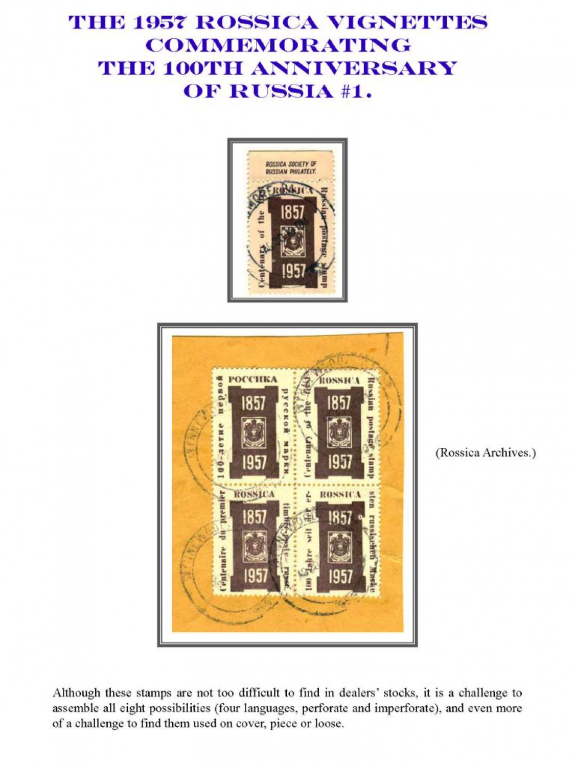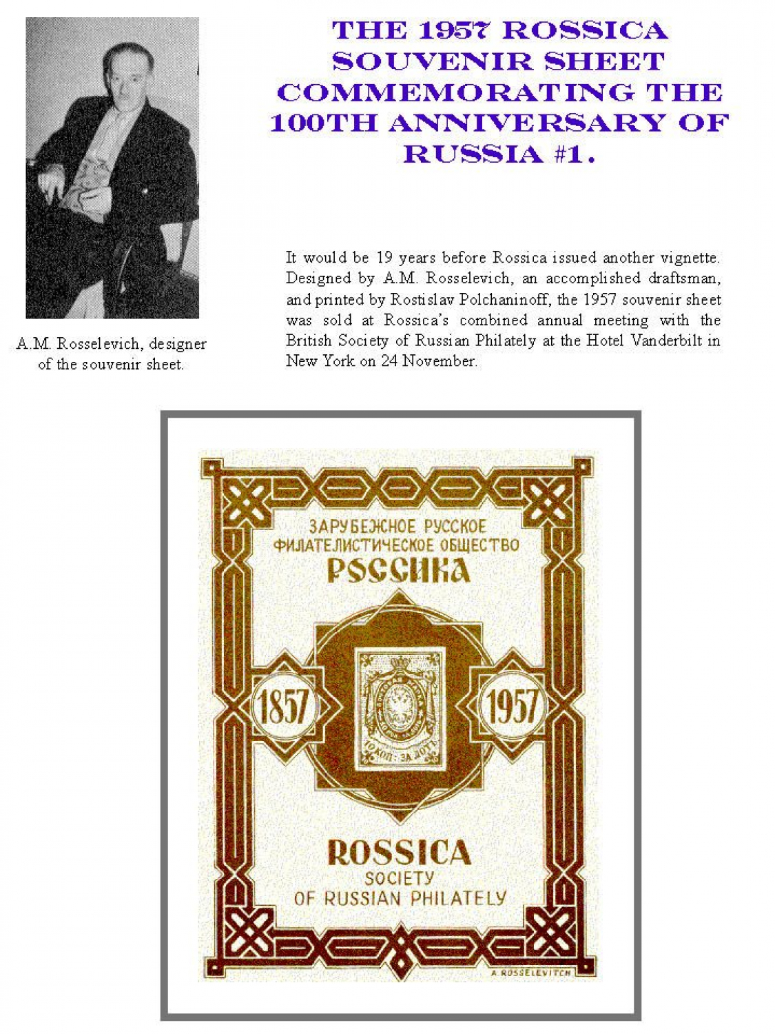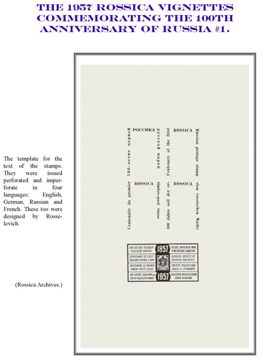 Rossica's Vignettes 1938 - 2008 Frame 1