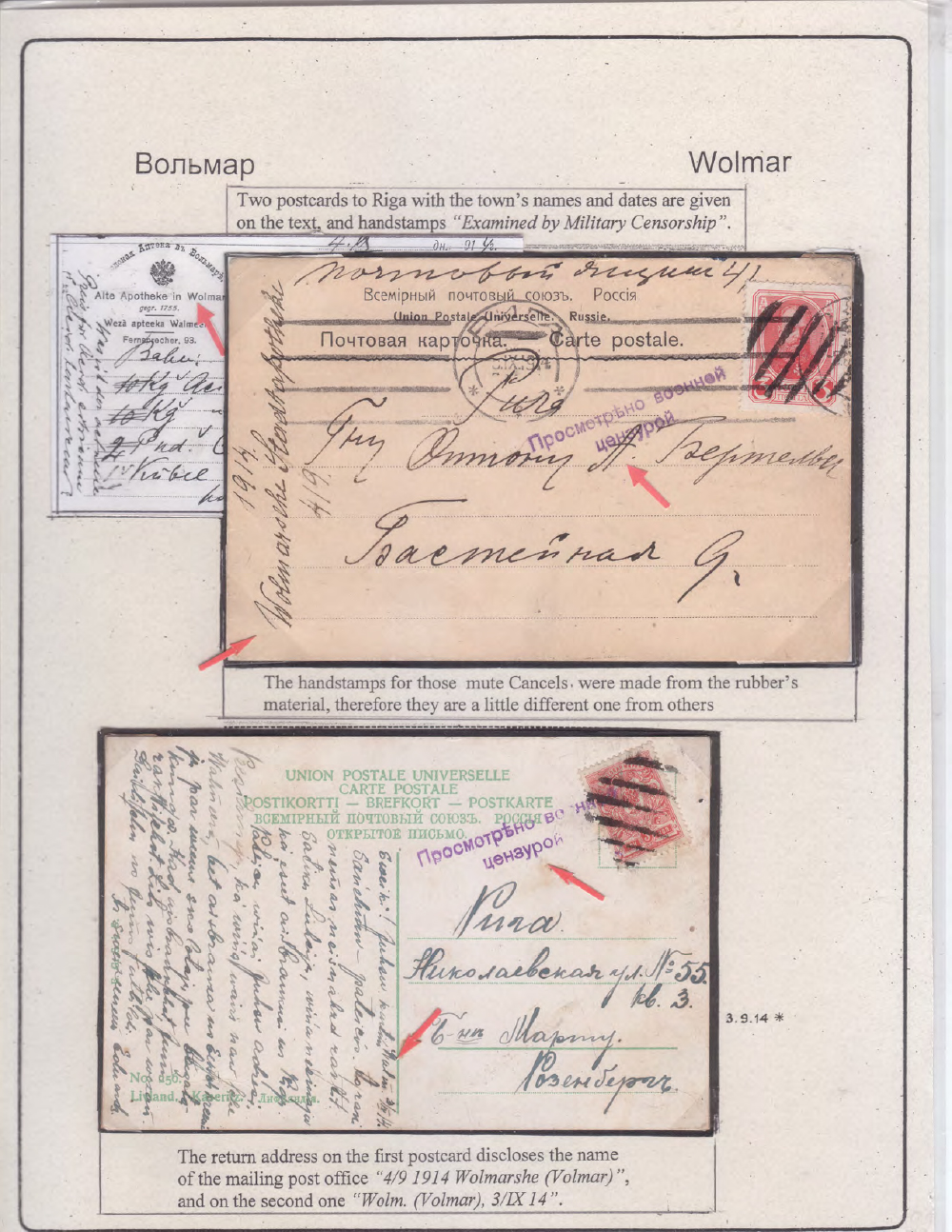 Russian Mute Cancels and Registration in WWI. Fragment of the Research Collection, by Arnold Levin