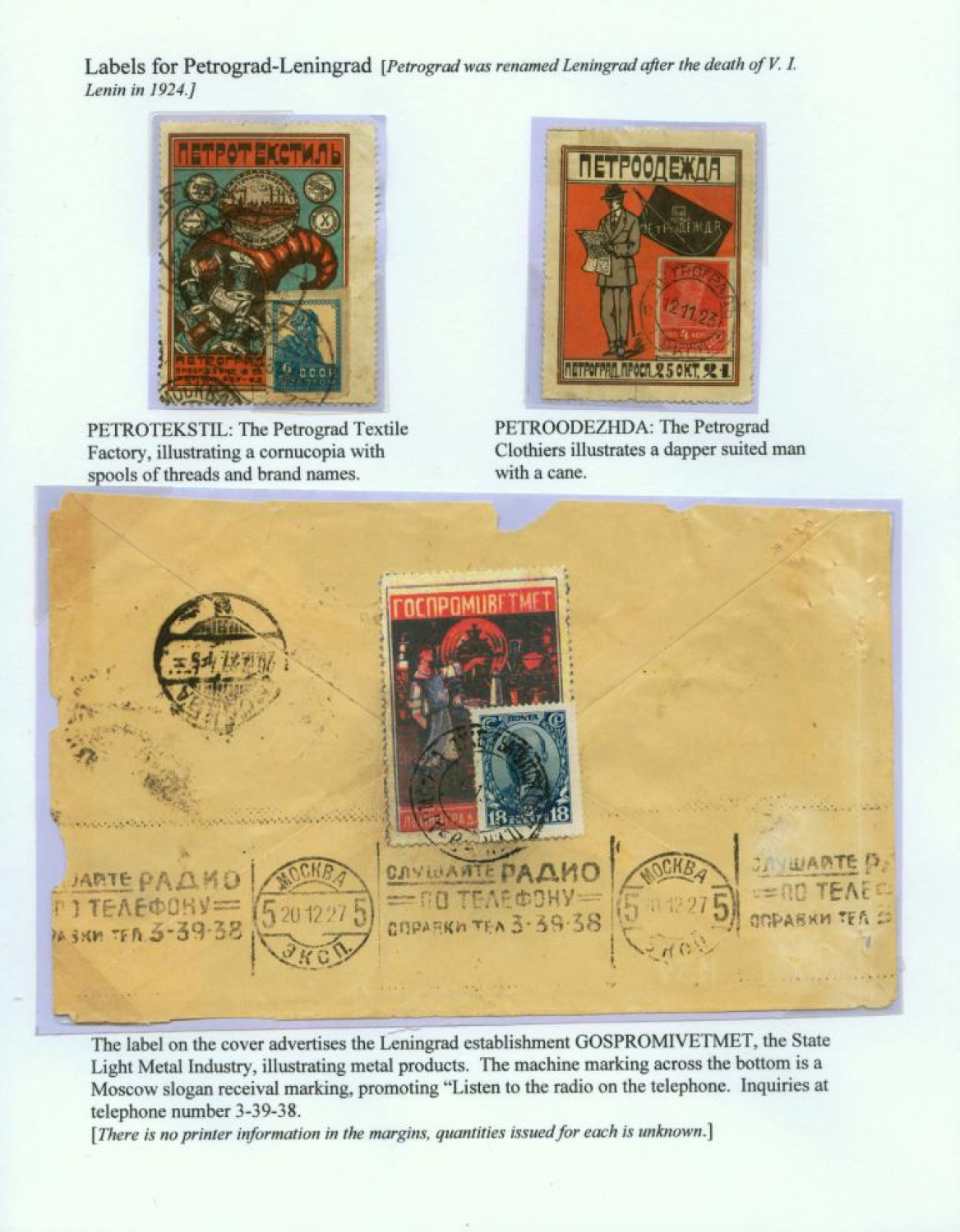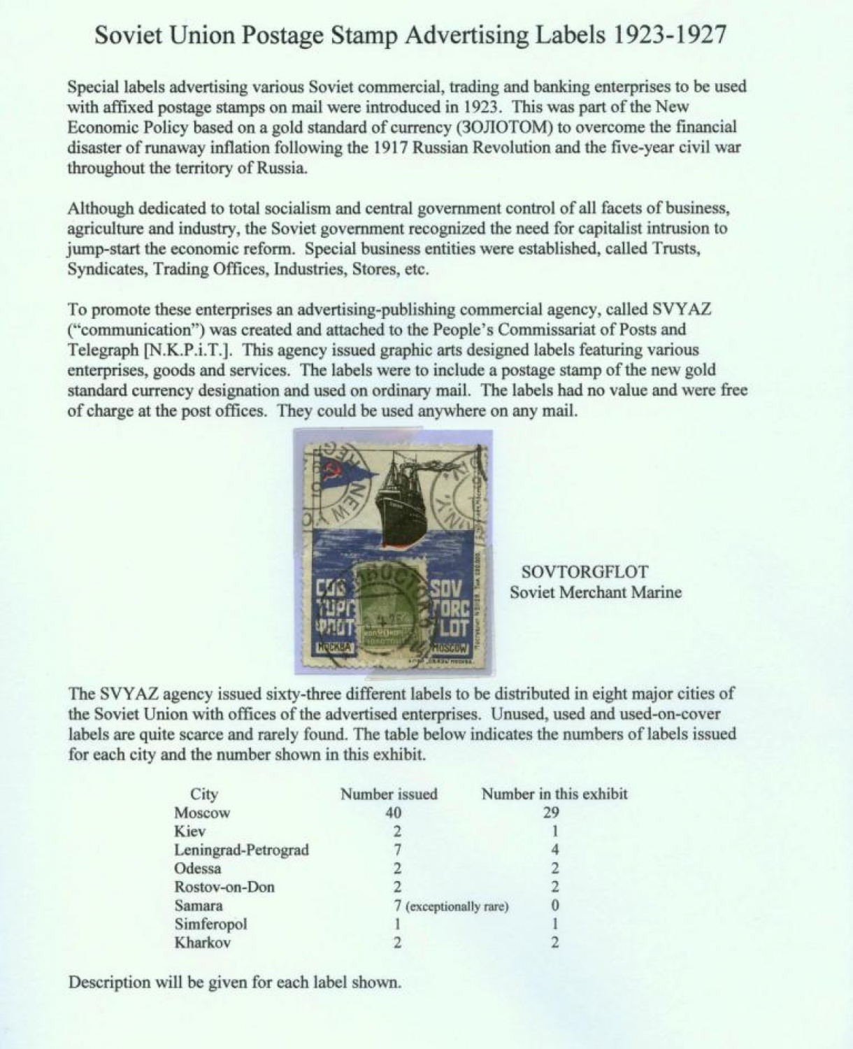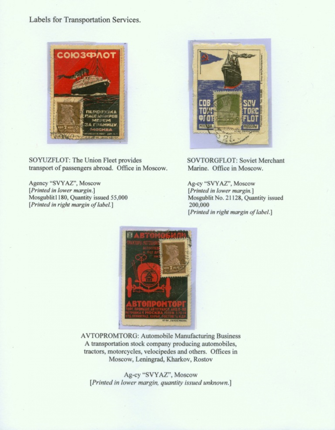 Soviet Union Postage Stamp Advertising Labels 1923-1927, by Paul Ortega