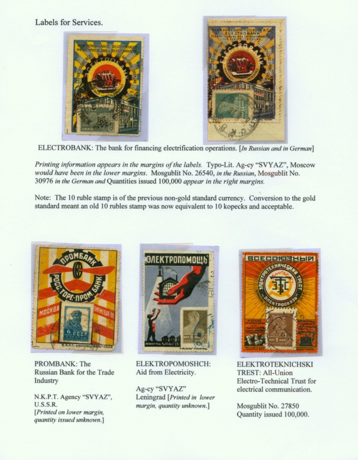 Soviet Union Postage Stamp Advertising Labels 1923-1927