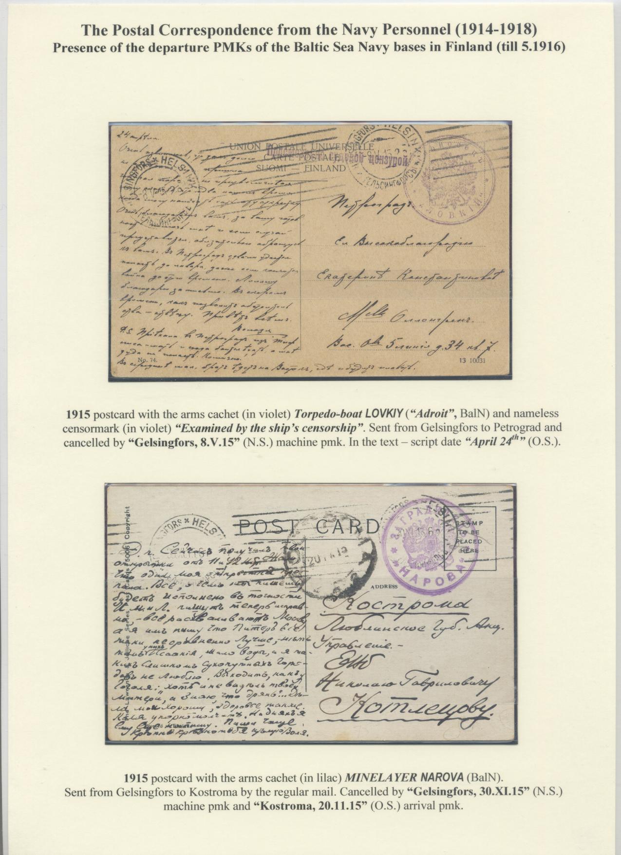 The Postal Correspondence of the Russian Navy Personnel (1901-1918)
