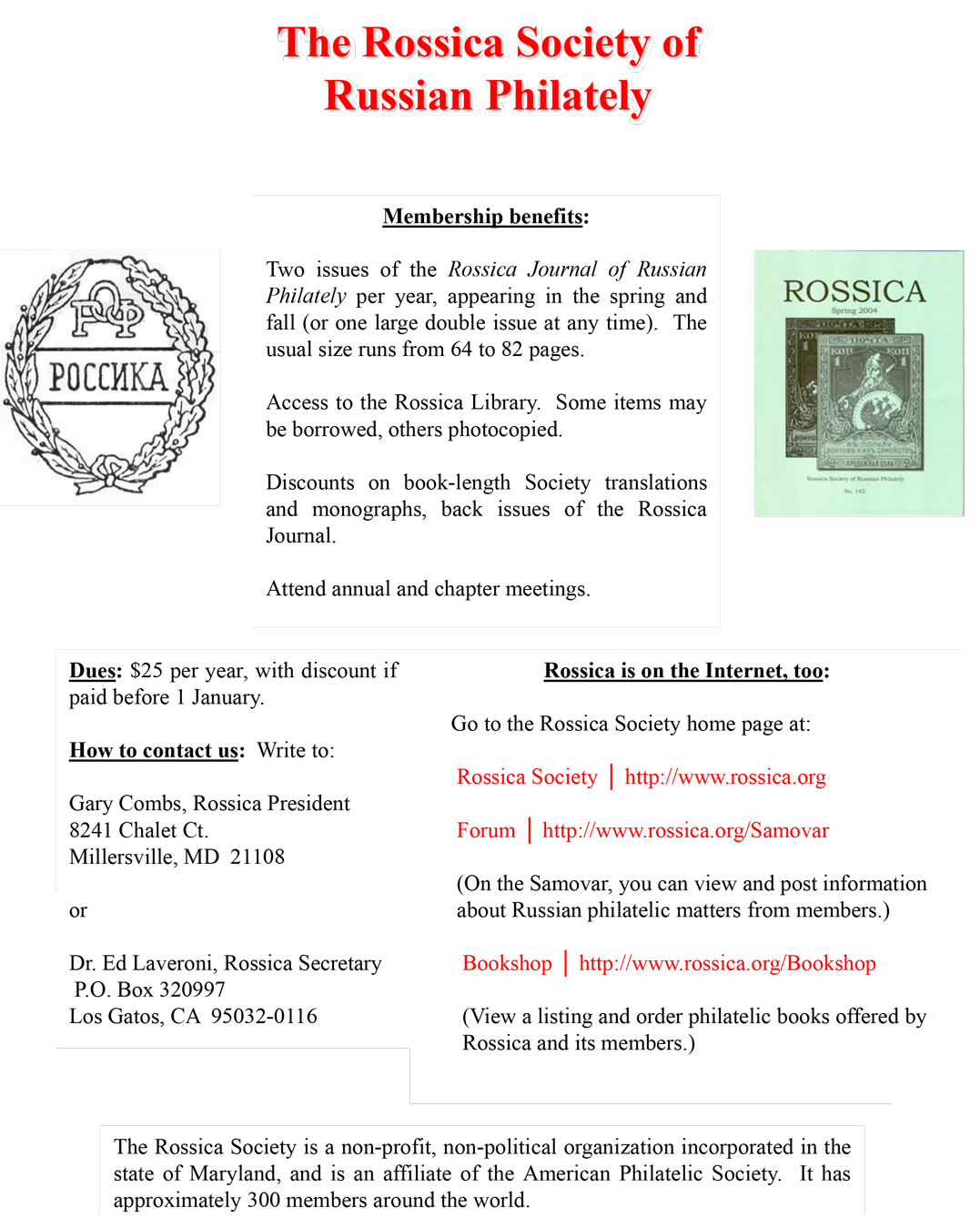 Advertise in Rossica Publications and the Rossica Website