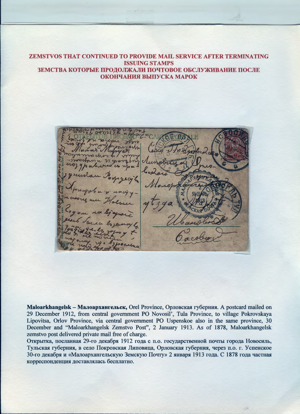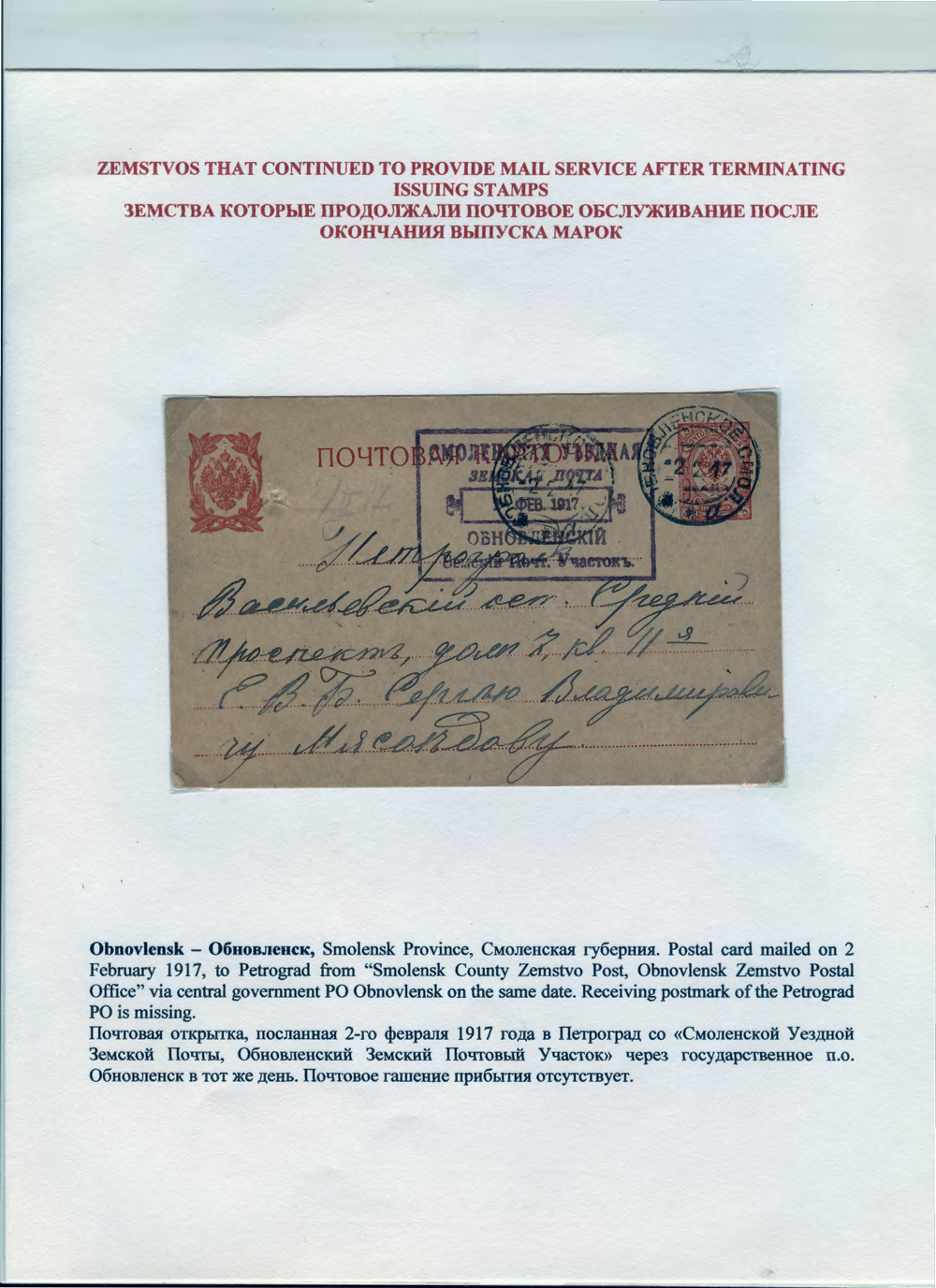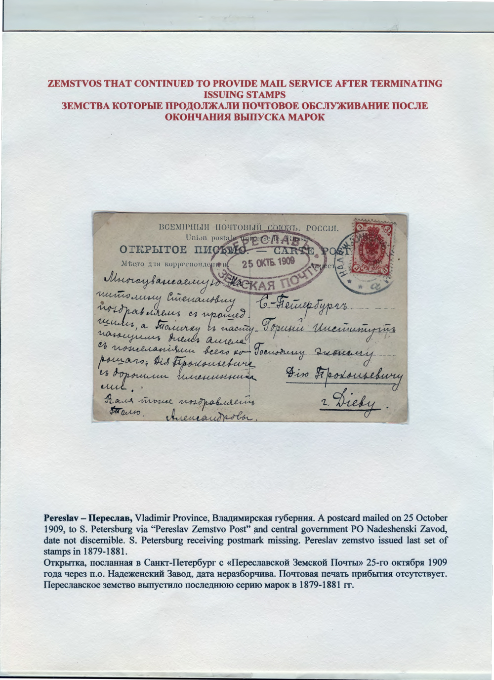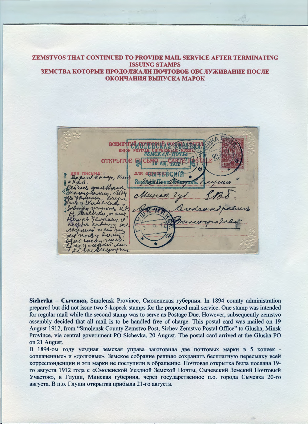 Unrecognized and Overlooked Zemstvo Mail, by George G Werbizky
