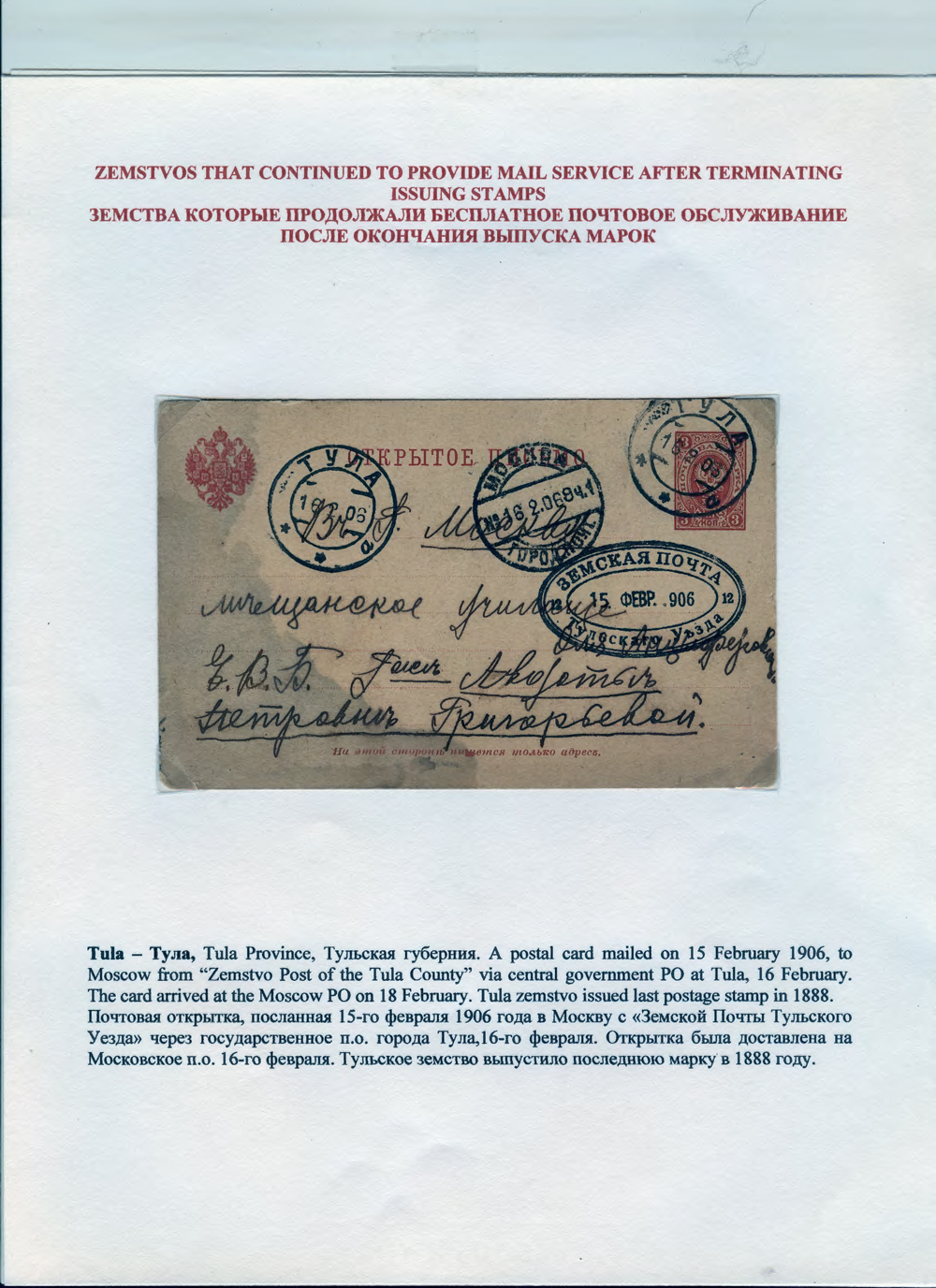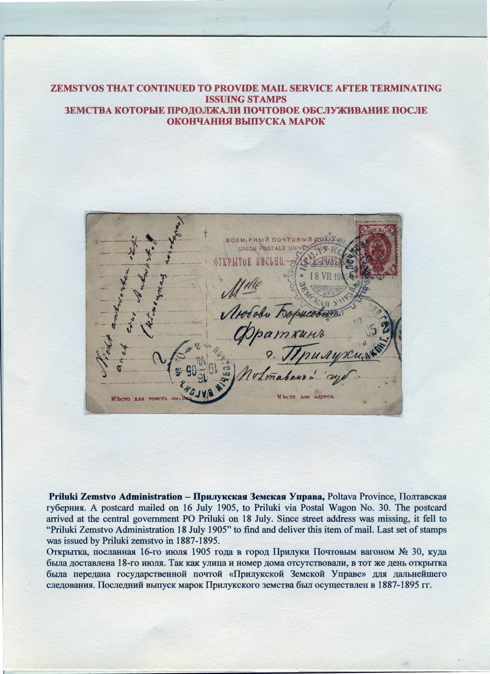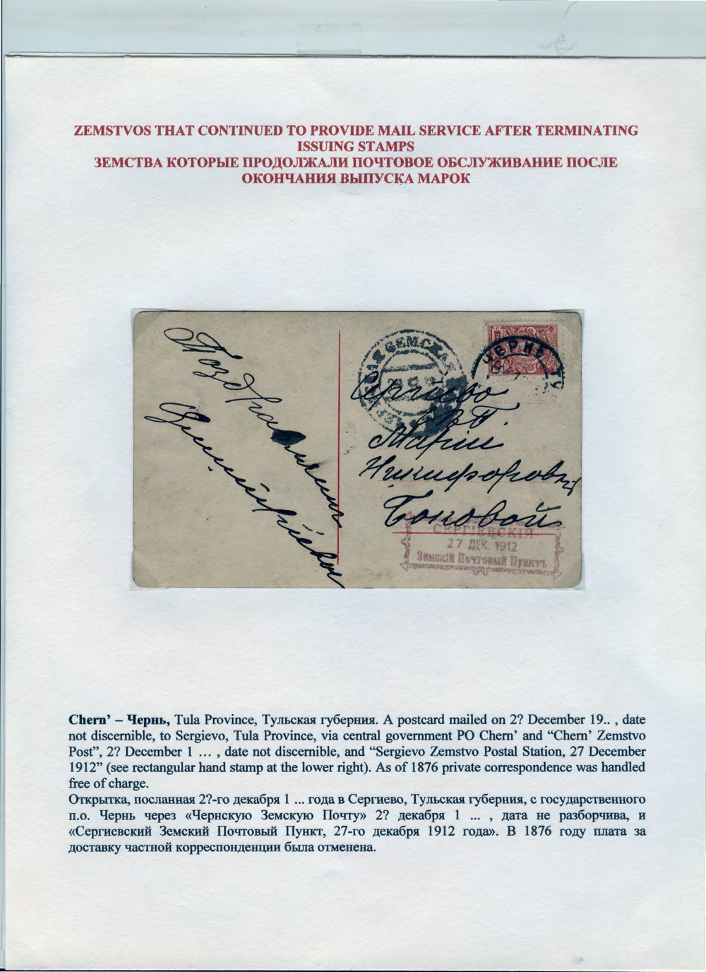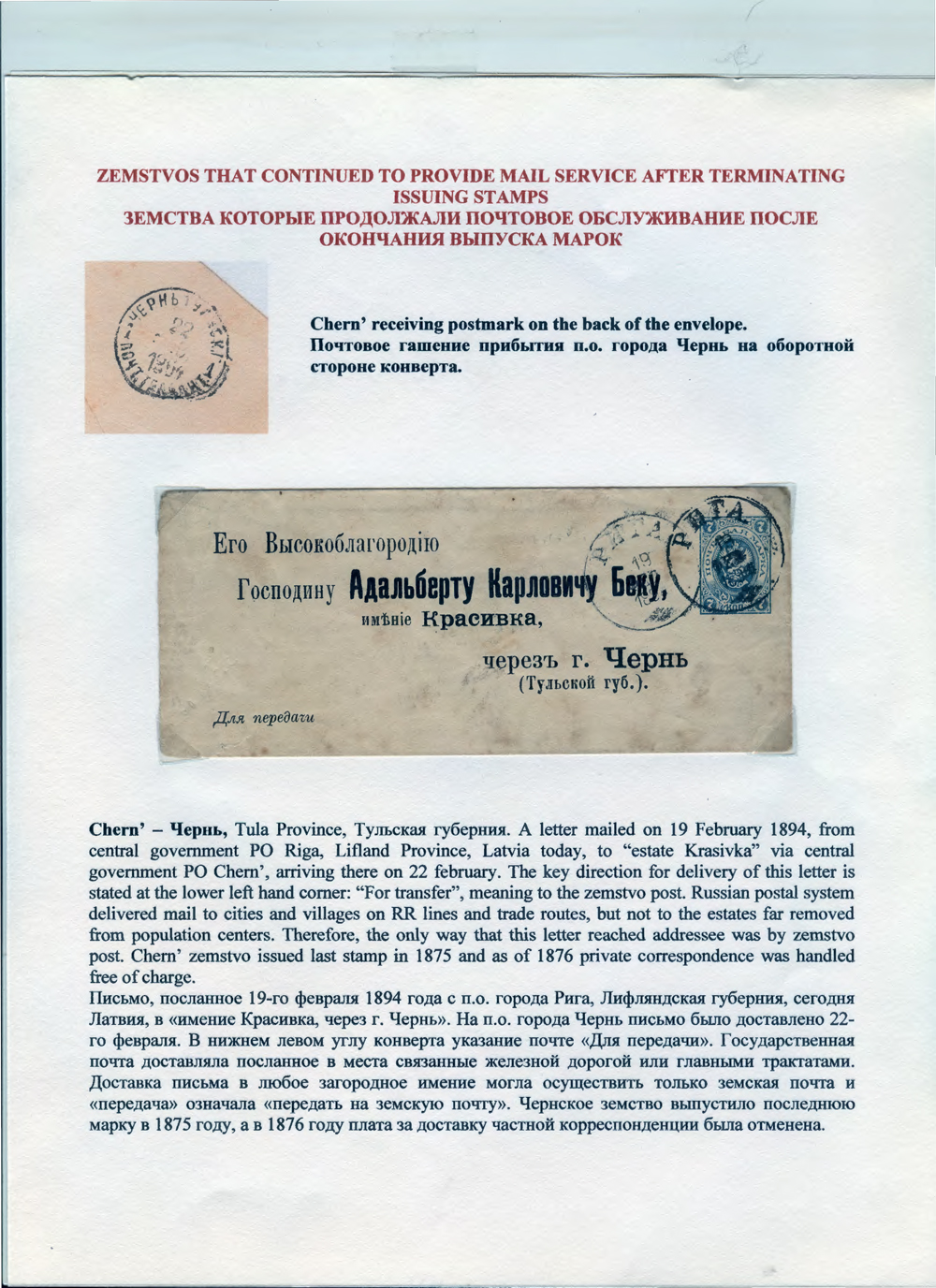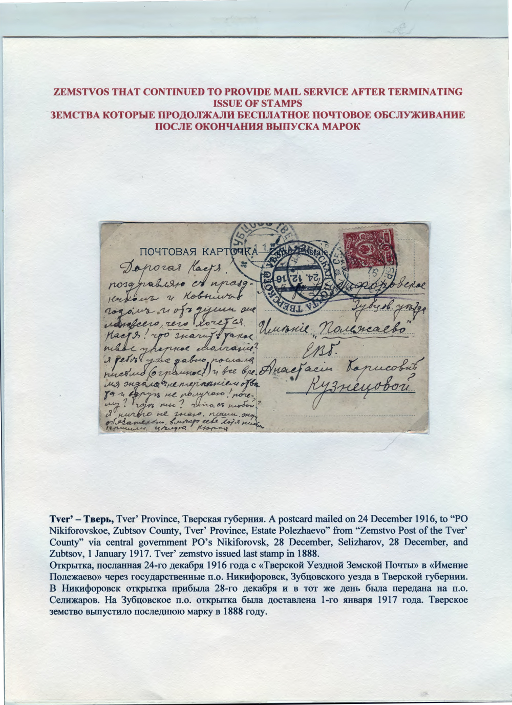 Unrecognized and Overlooked Zemstvo Mail, by George G Werbizky