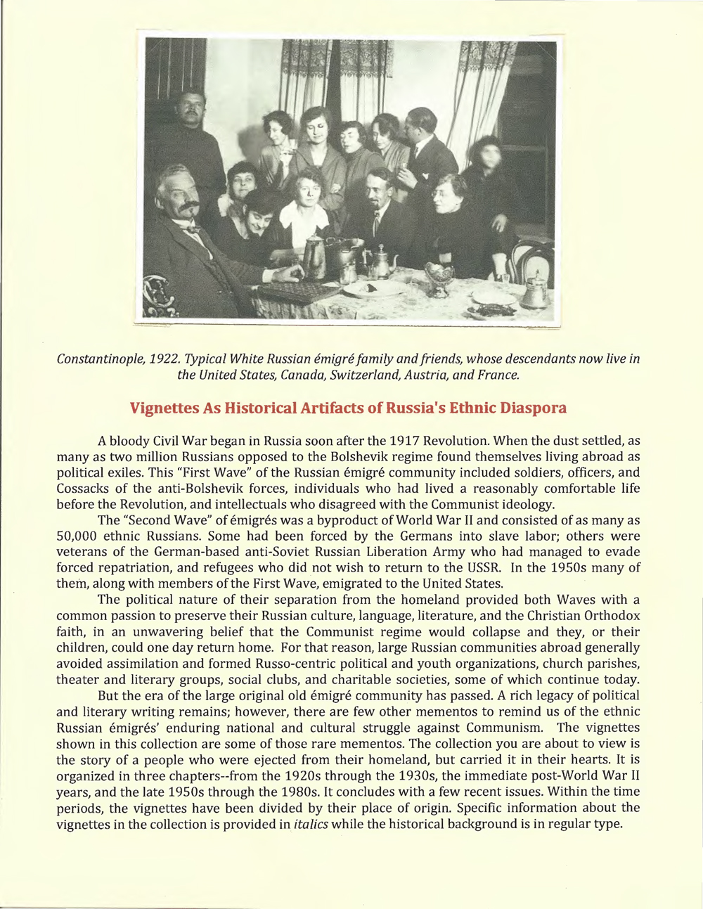 Vignettes As Historical Artifacts of Russia's Ethnic Diaspora